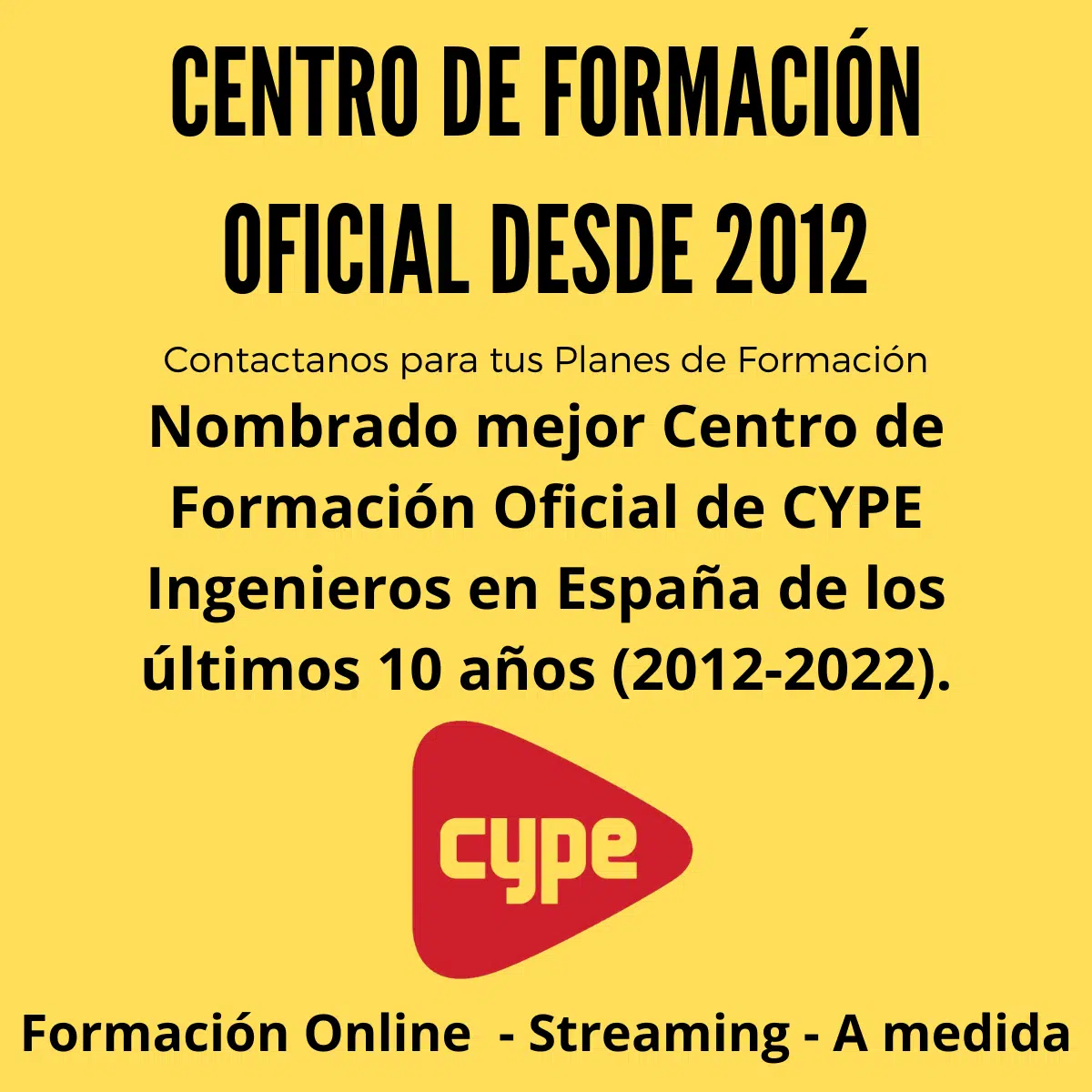 Somos Centro Oficial de formación de CYPE desde el año 2012 y hemos sido nombrados como el mejor centro de formación de los últimos 10 años. Ofrecemos cursos en Online o Streaming en directo siempre a medida del cliente.
