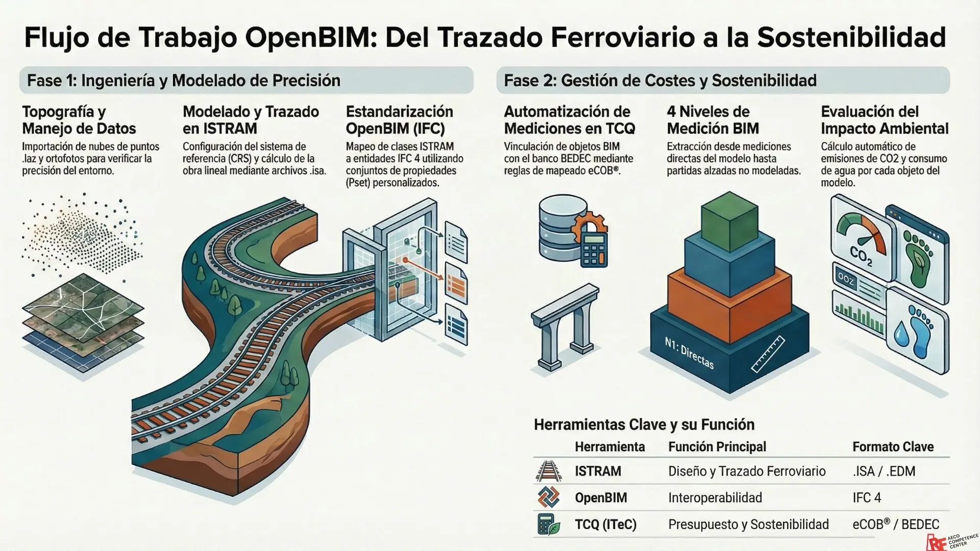 El objetivo principal es que domines el flujo de trabajo digital completo para proyectos ferroviarios, desde la captura de la realidad hasta el presupuesto final. Al finalizar este taller, habrás adquirido las siguientes competencias:
