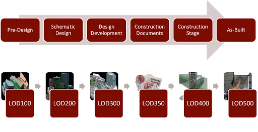 Para el proceso BIM es fundamental la filosofía del refinamiento gradual del modelo (gráfico y de información). Esta filosofía se ilustra mejor en las especificaciones de nivel de desarrollo (LOD) que se encuentran en guías como BIM Forum (última versión mayo de 2020). Esta guía muestra cómo un elemento se nutre progresivamente desde una representación genérica (LOD 100) hasta un modelo preciso, según lo construido (as-built). La guía hace explícito que “no prescribe qué Niveles de Desarrollo (LOD) deben alcanzarse en qué punto de un proyecto, sino que deja la especificación de la progresión del modelo al usuario”. La guía es, por tanto, una referencia para delimitar el contenido y fiabilidad de un modelo.