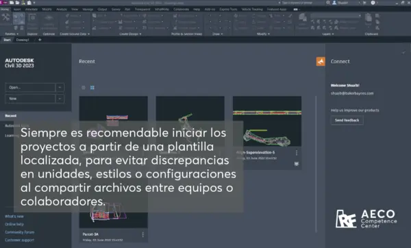 💡 Consejo: Siempre es recomendable iniciar los proyectos a partir de una plantilla localizada, para evitar discrepancias en unidades, estilos o configuraciones al compartir archivos entre equipos o colaboradores.