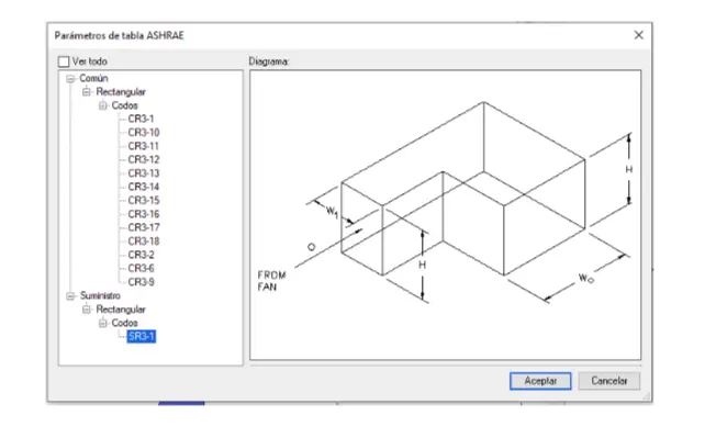 Sin embargo, y como mencionaba anteriormente, en el caso de los elementos de unión y otras singularidades, sí obtendremos sus valores de pérdida de carga directamente desde las tablas ASHRAE, implementadas de manera nativa en el programa.