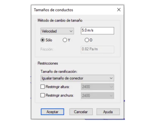 Además de ofrecer toda la información que comentaba en la respuesta anterior, Revit MEP también permite el ajuste automático de nuestros sistemas, atendiendo a valores límite elegidos por el usuario de fricción, velocidad, fricción igual y recuperación estática.